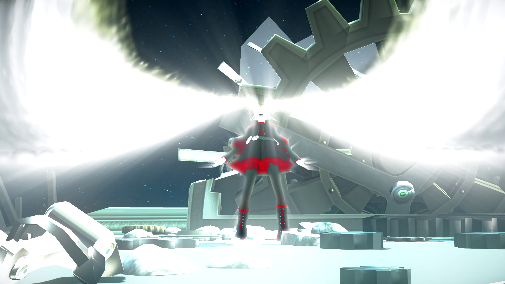 Cinder somehow is able to communicate with the Grimm Dragon Behemoth thing and at that point, Pyrrha arrives at the Tower to fight her. The fight is actually quite enjoyable to watch, being... Pyrrha's last fight and all. Pyrrha clearly puts up a good fight, I mean for someone fighting the Fall Maiden, I thought it was a close fight. Cinder is able to overpower her however, and manages to shoot an arrow into her heel. Great Achilles reference there, since Pyrrha is based off that hero with the weakness in the heel. Ruby at that time, is able to get on top of the tower, thanks to Weiss's glyphs! Reference to Volume 1 against the Nevermore! Before she gets up there, Pyrrha is clearly a goner. She notably asks Cinder "Do you believe in Destiny?"... It was a pretty touching and emotional scene tbh. I probably would've gotten emotional, if I hadn't seen the spoilers earlier from Facebook Comments and the RWBY Spoilers Thread on the Wikia. After that, Cinder fires an arrow into her heart, and Ruby comes up at this point. Pyrrha disintegrates into ashes... And our poor Ruby, who had to deal with Penny dying, Vale being attacked by Grimm and other monsters, her friends being injured, Yang being dismembered, etc, now has to deal with THIS. She goes to her breaking point and screams, allowing some binding white light to come from her eyes, which envelopes the whole area, causing Cinder to lose her $@#!.