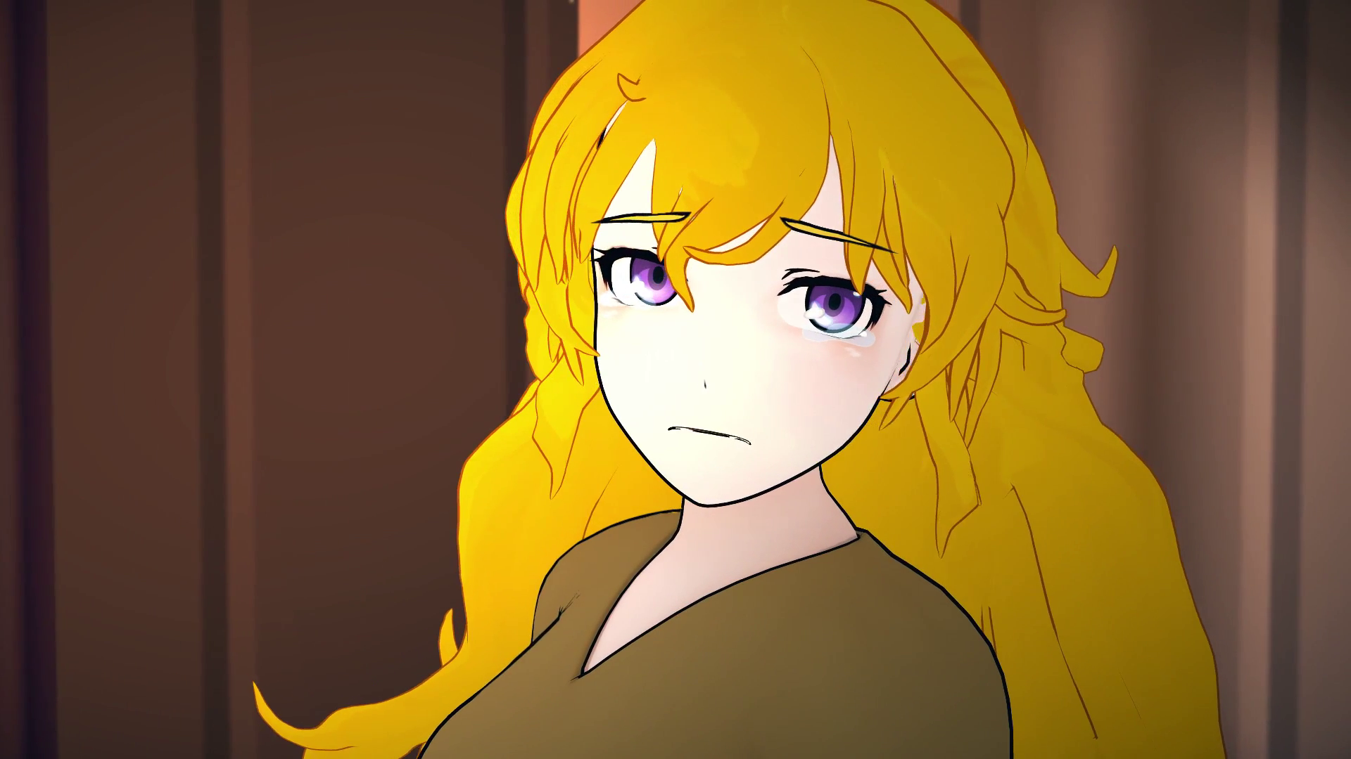 Ruby visits Yang in another room... Which is strange. Because in Ruby's room, there were two beds- a red one and a yellow one, with Ruby in the red one. I assumed that Yang's bed was the yellow, so it clearly seemed like Yang was staying in a spare bedroom or something. As if she wanted to be away from Ruby.