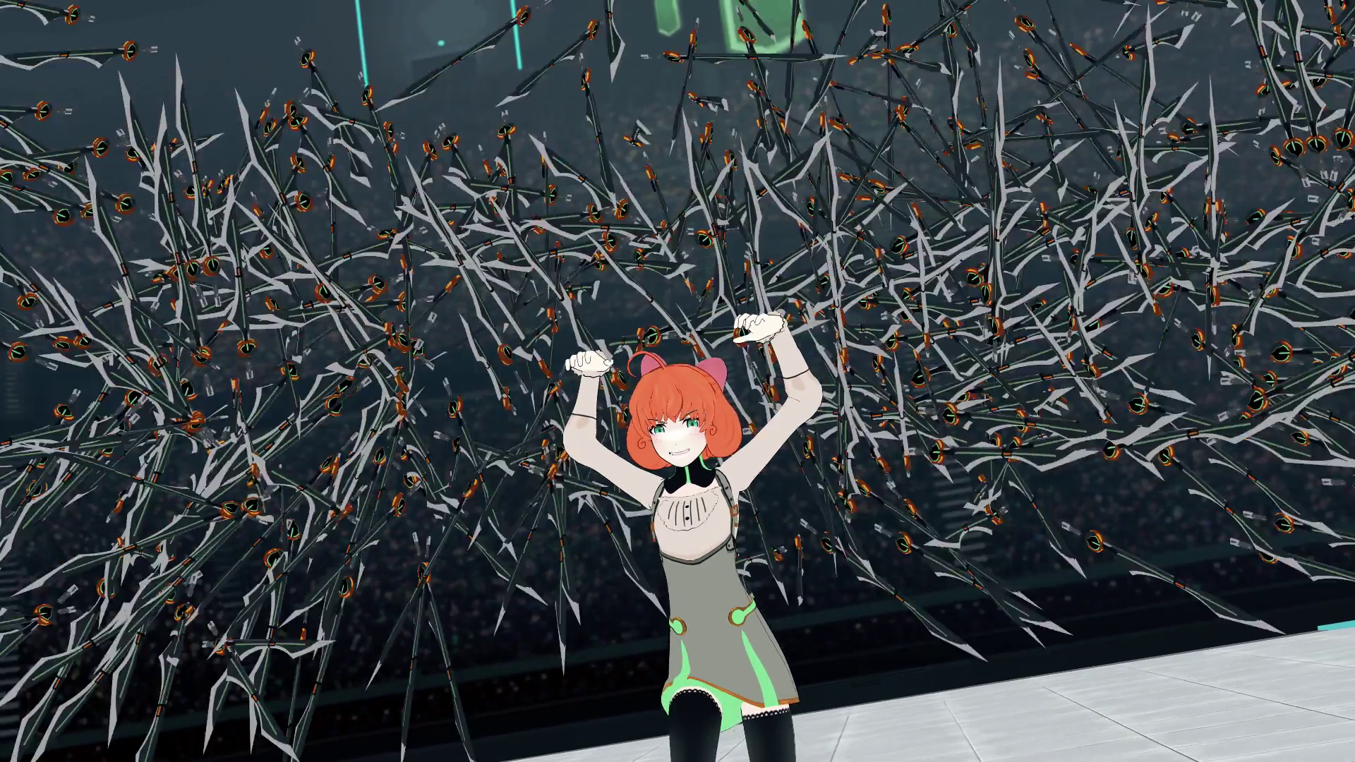 Episode 9 is quite the rollercoaster. Penny v. Pyrrha starts and the two are pretty evenly matched. The fight was pretty enjoyable to watch... Well, until the Illusion part -_- Anyway, we also have Mercury attacking Ruby at the same time, and since Ruby doesn't have her scythe and since Mercury destroyed her scroll, she can't call for help, so she can only try to run away. Back at the Arena, Penny is attacking Pyrrha and she uses her Polarity on the defensive. Emerald makes it look like Penny has bazillion swords that are about to hit Pyrrha and she acts more on the defensive, using a very powerful pulse of magnetic force, deflecting the swords and somehow having Penny's wires latch onto herself and cut straight through her, cutting herself into various parts, showing that she's a robot, much to Pyrrha's horror, as she is now gone. Everyone is shocked, Ozpin, audience, etc. Ruby arrives at this time and sees Penny destroyed... :( Cinder hijacks the broadcast, and blames all the stuff that happened from Yang's match to this one on the headmasters and also mentions how corrupt the schools are and that Atlas and Vale are hostile, bringing up more nonsense about how the kingdoms are at the brink of war and the people don't know about this. People respond negatively to this and the emotion draws all the Grimm in and giant Grimm are attacking the city and destroying everything. Ozpin's crew heads out to defend the place, while even more Grimm overwhelm the area. Meanwhile, Torchwick is freed and Adam and the White Fang appear, attacking Beacon.